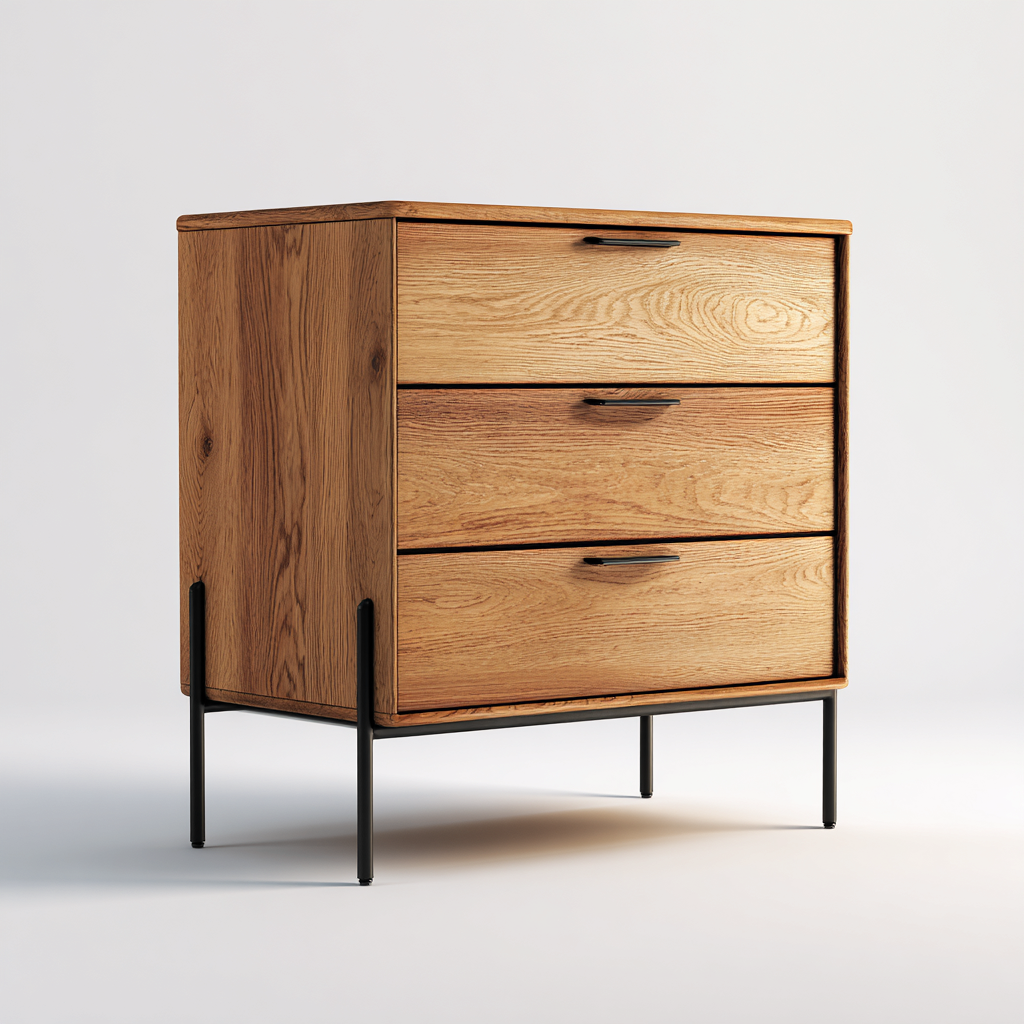 Cassettiera dal carattere elegante progettata per ambienti residenziali come camera da letto, soggiorno o studio. La struttura rialzata conferisce leggerezza visiva e facilita la gestione dello spazio, mantenendo una funzione contenitiva pratica.