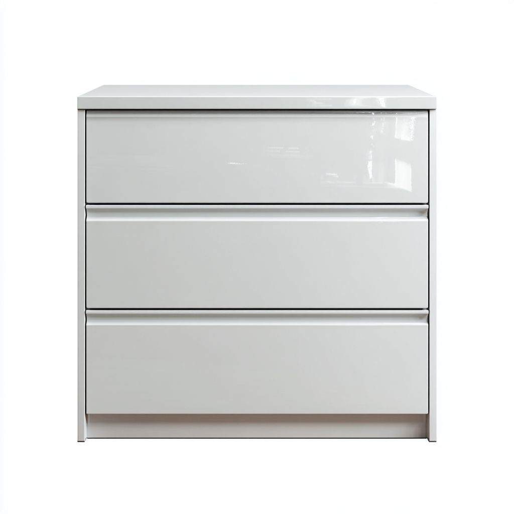 Cassettiera dal design pulito e contemporaneo progettata per ambienti moderni come camera da letto o zona giorno. Le superfici lucide contribuiscono a un aspetto luminoso e ordinato, ideale per l'organizzazione quotidiana degli spazi.