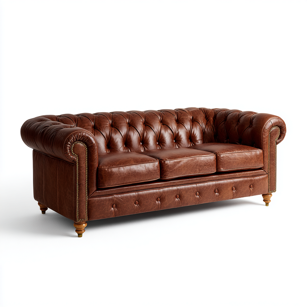Divano a 3 posti in stile Chesterfield pensato per arredare con carattere il soggiorno o lo studio. La forma avvolgente e le proporzioni equilibrate offrono una seduta confortevole e un impatto estetico senza tempo.