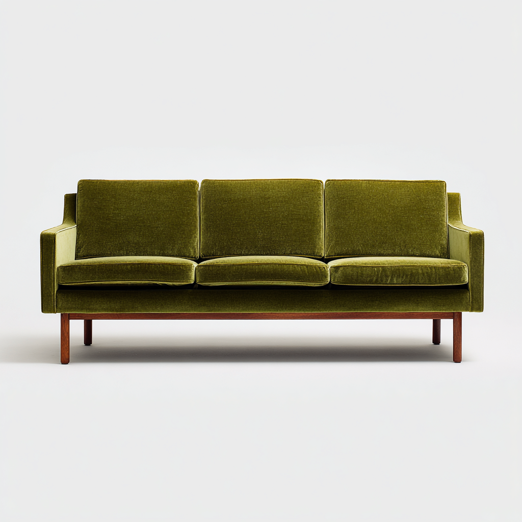 La seduta profonda favorisce una postura rilassata mentre i braccioli dritti mantengono un ingombro visivo contenuto. Il colore verde oliva aggiunge carattere senza risultare invasivo.
