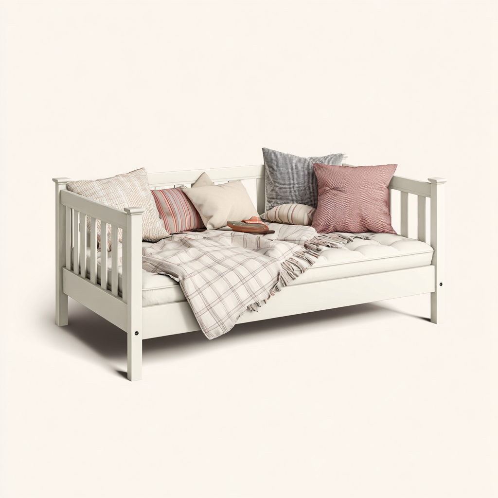 Divano letto pensato per l'arredo di camera da letto, soggiorno, studio o camera degli ospiti. La struttura con schienale e braccioli offre una seduta confortevole durante il giorno e una superficie letto stabile per l'uso quotidiano, adattandosi facilmente a diversi ambienti domestici.